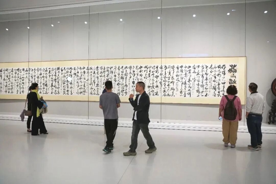 本次展览中,韩天衡为岭南量身打造的新作《荔枝诗卷》《广州花市》首次公开亮相,成为展陈中的一大亮点。11.25米的《荔枝诗卷》,甄选自唐至明清17位名家吟咏岭南荔枝的经典诗作,以笔墨镌刻岭南风土人情,让千年粤韵在书法中流转;书法作品《广州花市》则源自陈毅元帅的同名五言诗,以遒劲笔墨勾勒羊城花市的繁盛景象,映照出社会主义新时代的生活芳华,更饱含着艺术家对岭南大地的深情厚谊。