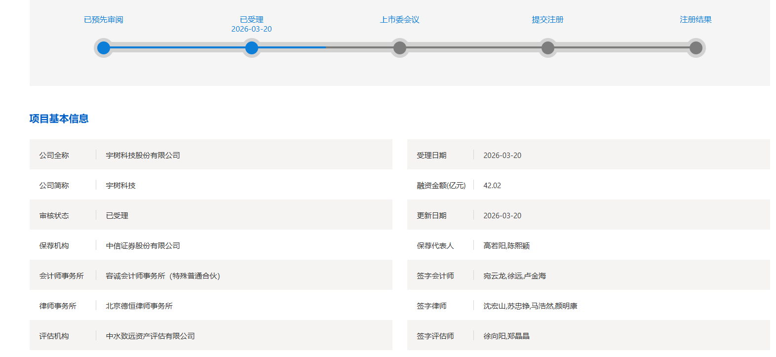 3月20日,上交所受理宇树科技股份有限公司科创板IPO申请。