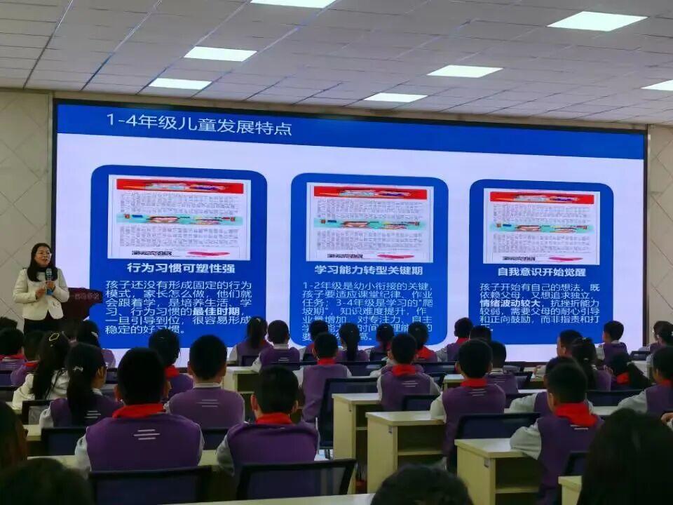曲怀英以“健康第一”为核心切入点,结合现代社会发展与儿童成长规律,深度解读了当下孩子的发展特点,帮助家长们读懂孩子、科学育儿。曲老师指出,小学阶段是孩子成长的黄金关键期,呈现出三大核心特点:行为习惯可塑性强;学习能力转型关键期;自我意识开始觉醒。曲老师强调:健康是孩子一切成长的前提,而好习惯,是守护孩子身心健康、助力终身发展的根本保障。